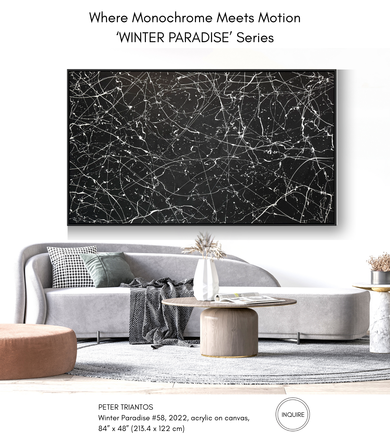The contemporary abstract artworks shown below are available for purchase or rental. Peter Triantos’ ever-evolving collections energize and brighten any space. Please note that many artworks can be displayed in both horizontal and vertical orientations. Please contact the gallery for any inquiries or visit us to view these stunning paintings in person.