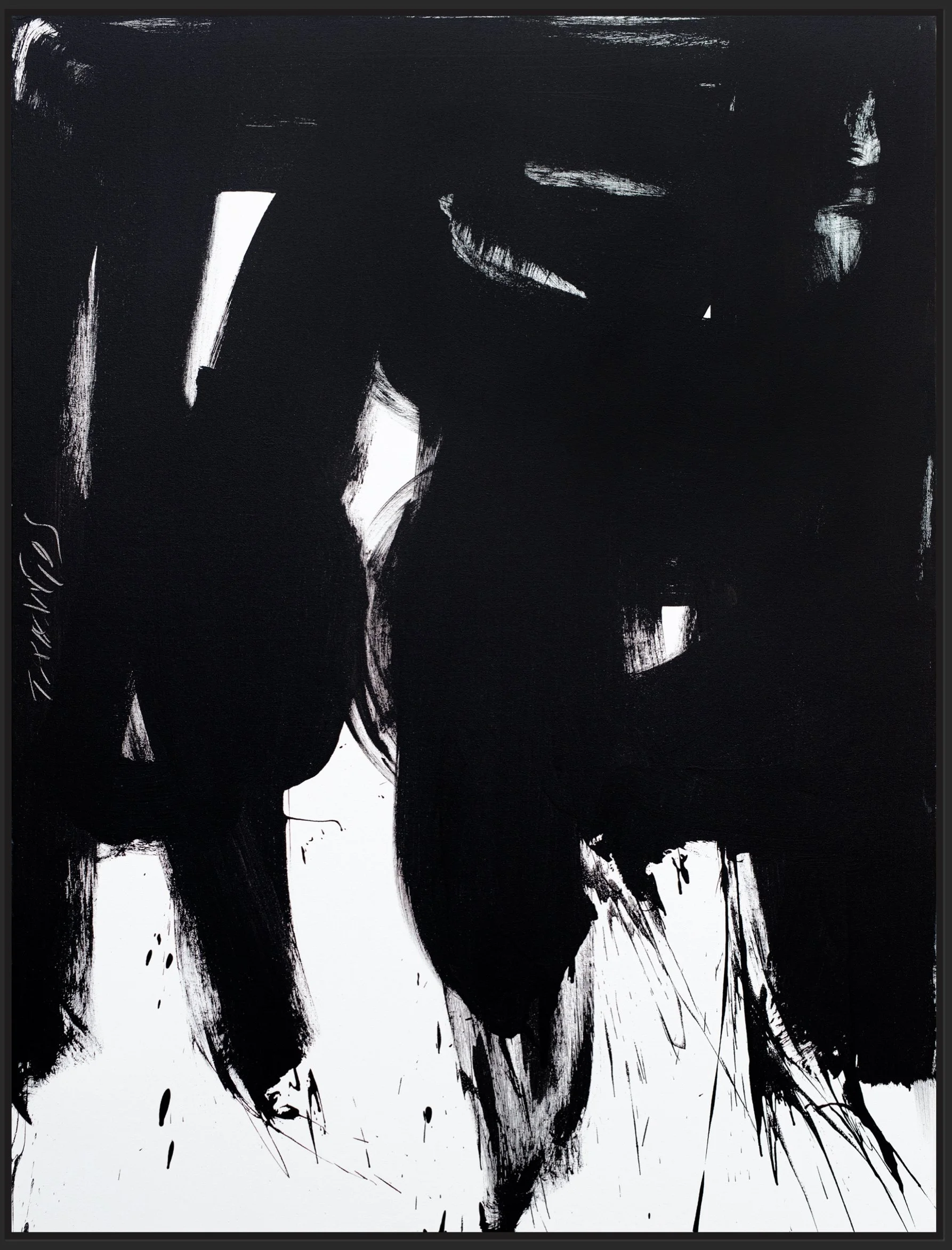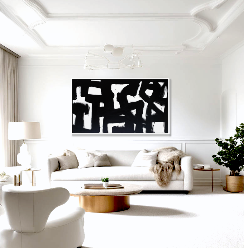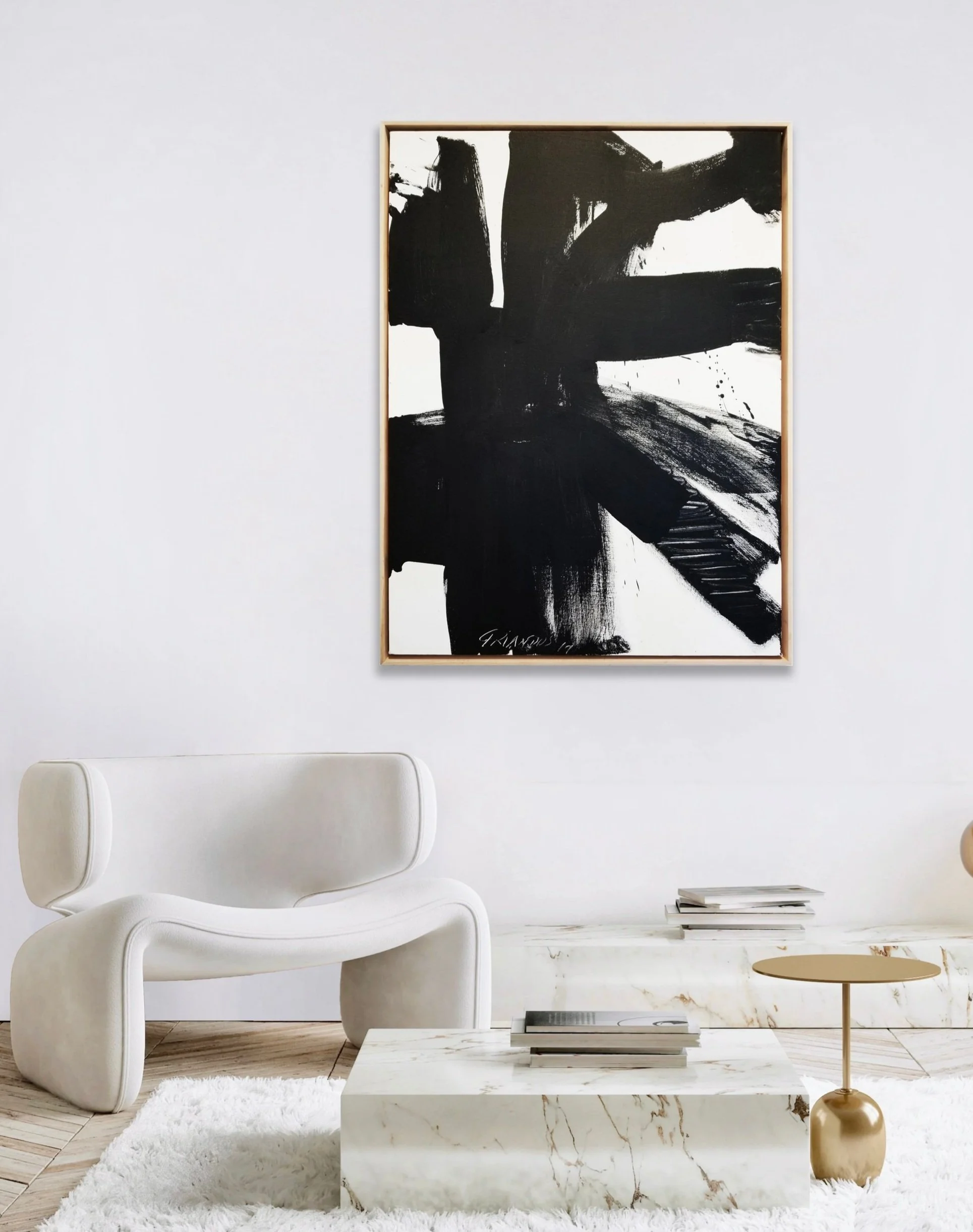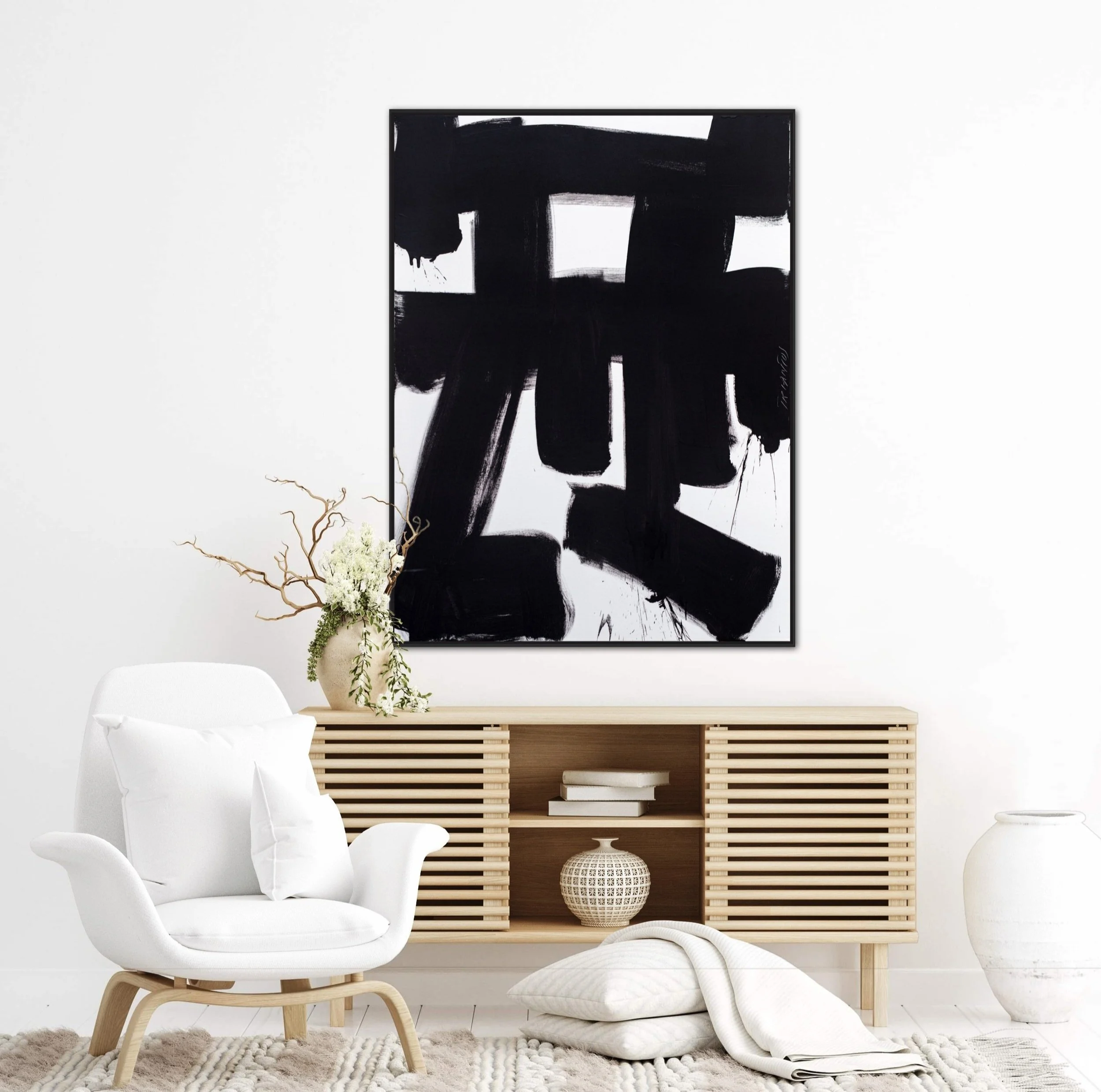 The juxtaposition of free flowing black brushstrokes in the ‘Black and White’ abstract series highlights the captivating contrast of the white negative space background. This is a collection of simplistic, abstract paintings with each piece inspiring a different range of emotion through bold brushstroke and splatter. Inspired by the Yin-Yang philosophy, the artist creates powerful, chic and sleek artwork with the simple contrast, black and white. The energy between each shade creates a powerful vision while each brushstroke, shape, and line speaks for itself against the crisp, white canvas or any medium. The monochromatic palette exudes a timeless luxurious look. These pieces emphasize the grand physicality of painting and the lively movement that comes with it.