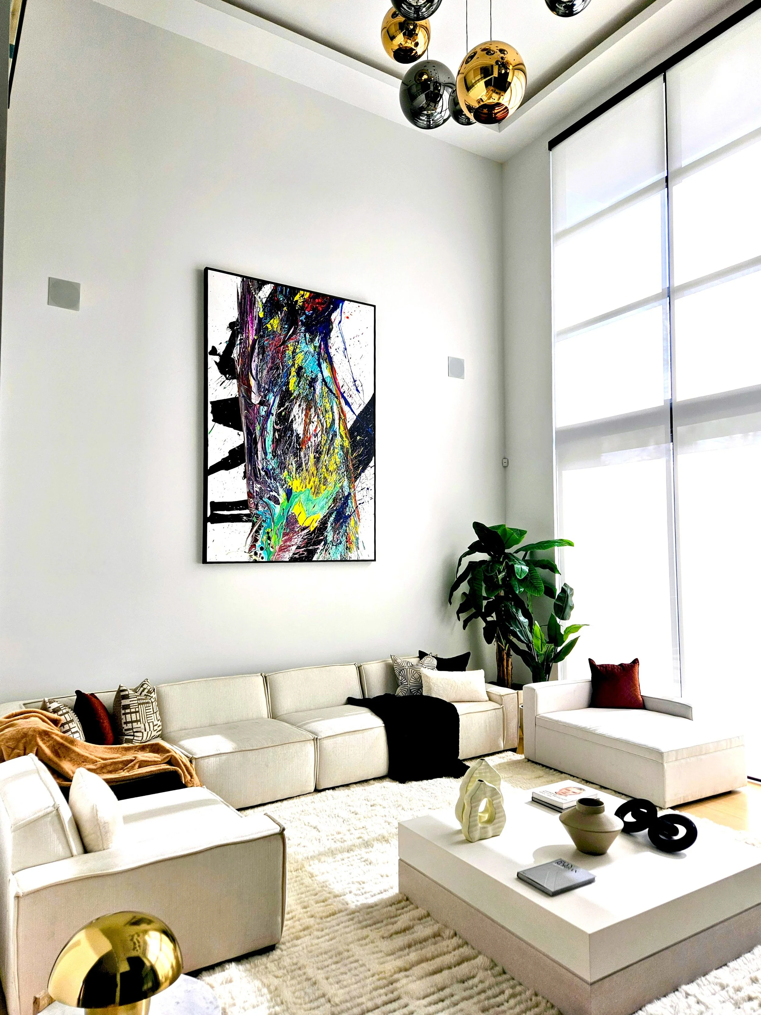 The contemporary abstract artworks shown below are available for purchase or rental. Peter Triantos’ ever-evolving collections energize and brighten any space. Please note that many artworks can be displayed in both horizontal and vertical orientations. Please contact the gallery for any inquiries or visit us to view these stunning paintings in person.