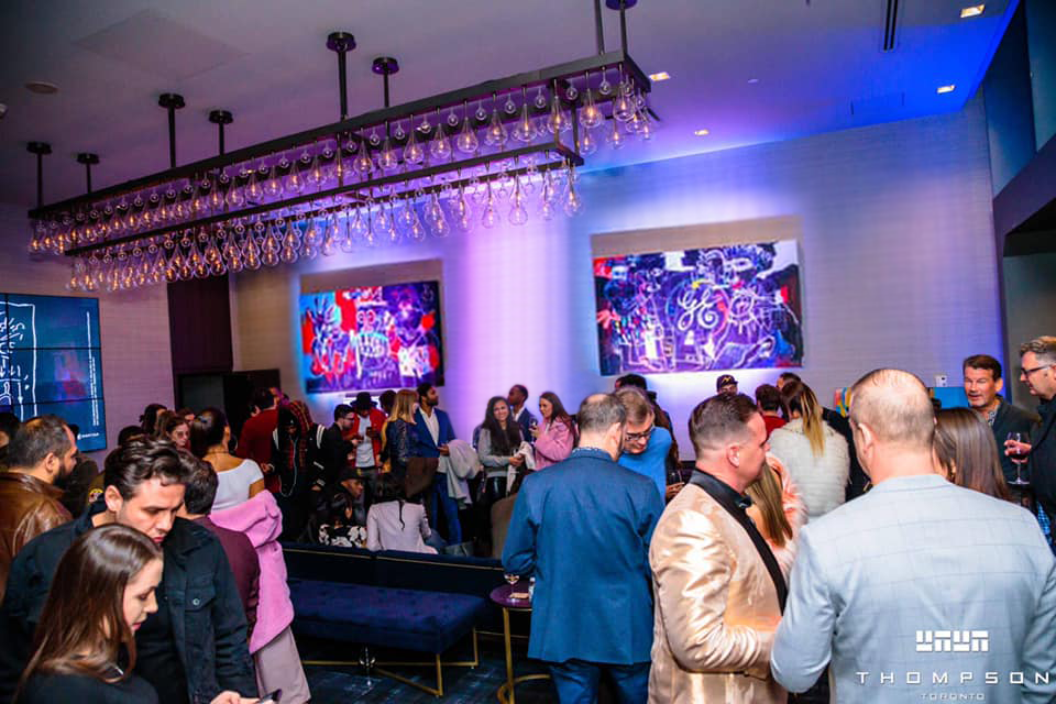 Peter Triantos 的 "抽象表现主义 "系列作品在2019年多伦多汤普森酒店的 "巴斯奎特的辉煌 "展览中展出。
